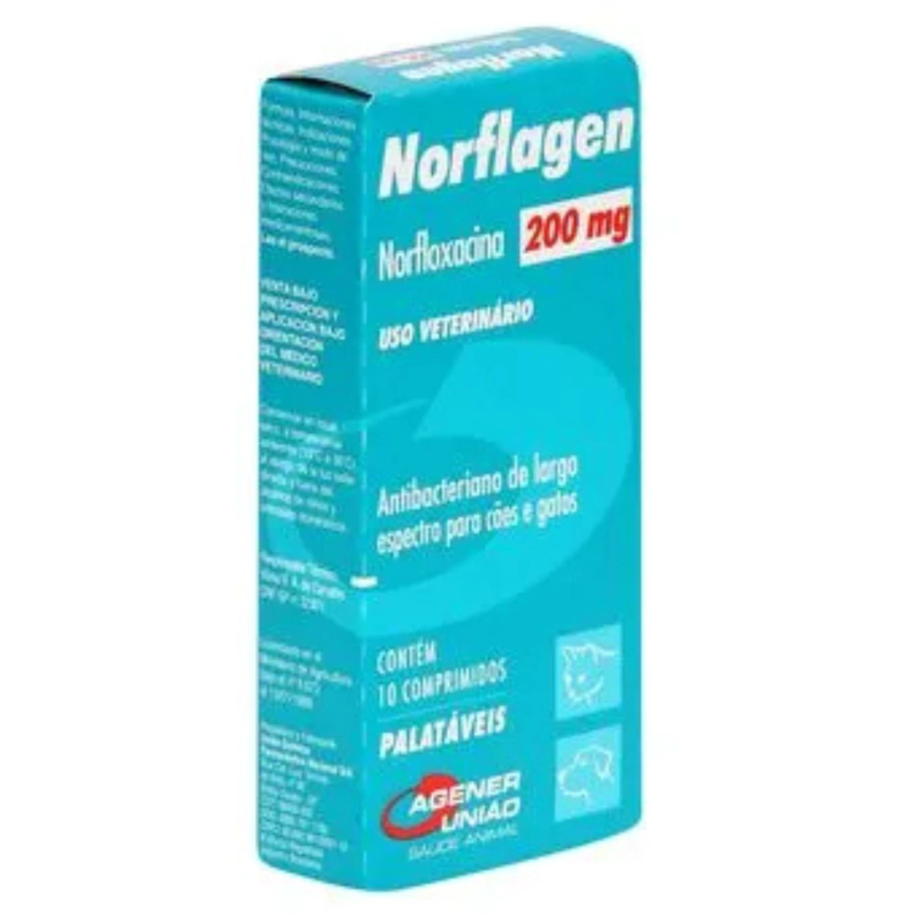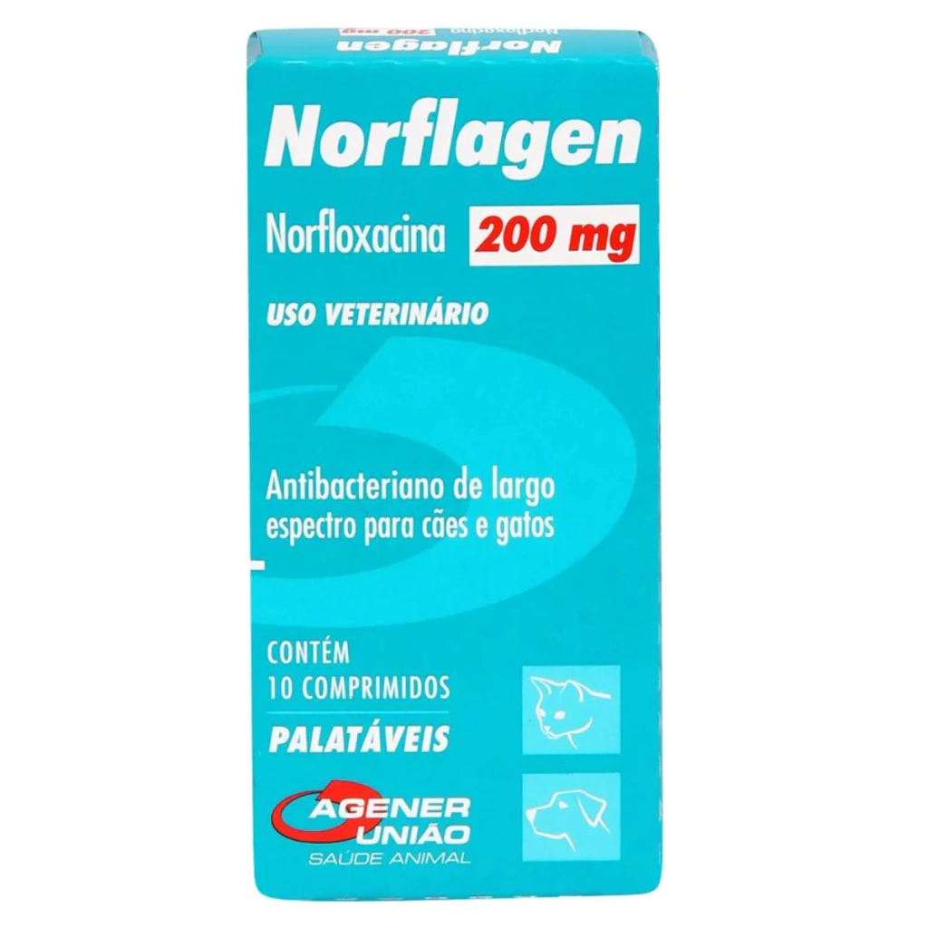 Norflagen é um antibiótico veterinário que contém norfloxacina, um membro da classe das fluoroquinolonas. Este medicamento é indicado para o tratamento de infecções bacterianas em animais, sendo eficaz contra uma variedade de patógenos sensíveis.
