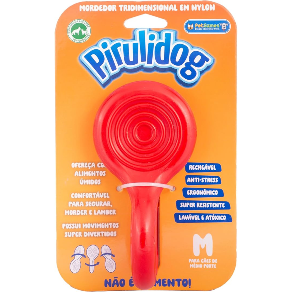 O Pirulidog Vermelho Tamanho P, da PetGames, é um brinquedo interativo e resistente, desenvolvido especialmente para cães de pequeno porte. Produzido em nylon atóxico e durável, ele foi criado para estimular o comportamento natural de roer, lamber e farejar, promovendo mais equilíbrio físico e emocional para o pet.