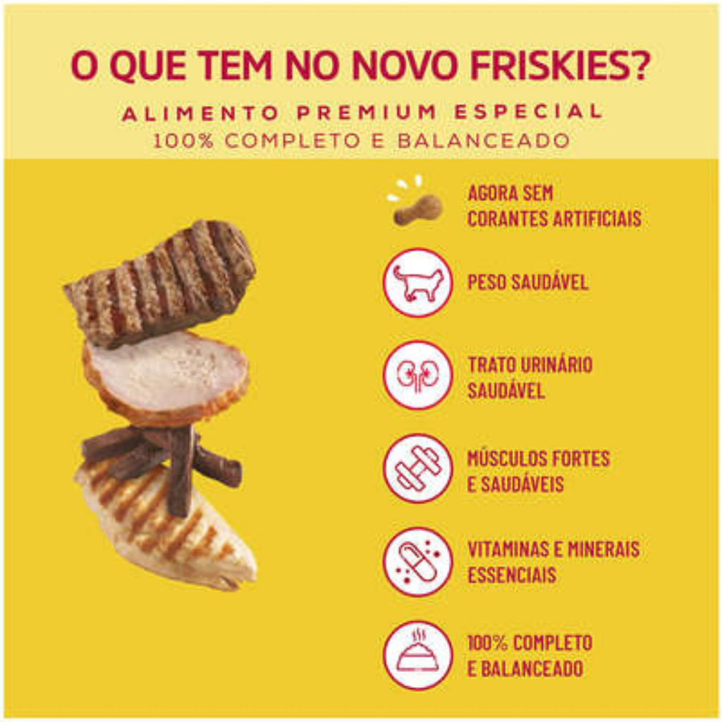 Ofereça a quantidade recomendada de Ração Friskies 10,1kg Mix de Carnes para Gatos Castrados conforme a recomendação diária de alimentação de acordo com o peso e nível de atividade do seu gato.Deixe sempre água fresca e limpa disponível para o seu gato.Armazene a ração em local fresco e seco para garantir que ela se mantenha em ótimas condições.Com a Ração Friskies 10,1kg Mix de Carnes para Gatos Castrados, você garante ao seu gato uma alimentação saborosa, balanceada e nutritiva, promovendo uma vida saudável e ativa após a castração. Uma escolha ideal para manter seu felino feliz, saudável e bem alimentado!