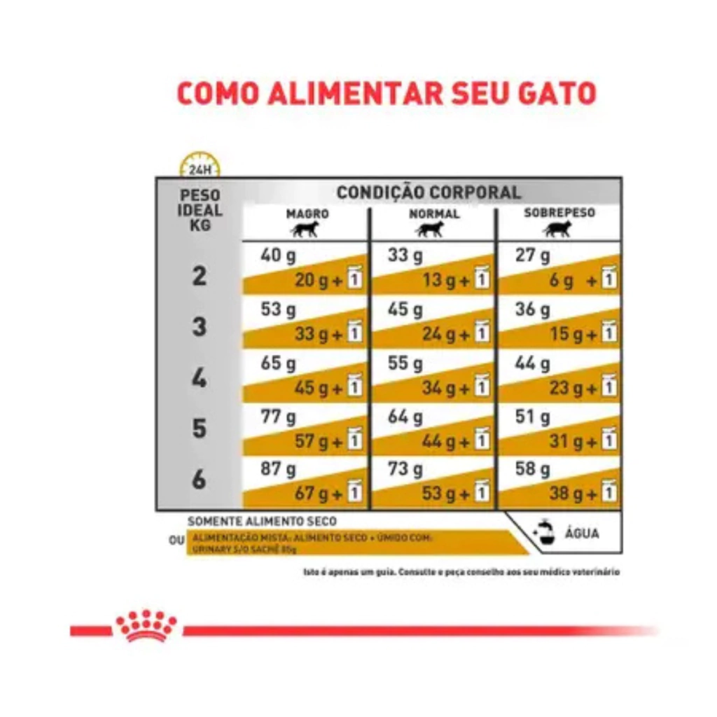 A Royal Canin Urinary S/O é formulada para promover um pH urinário ideal, prevenindo a formação de cristais e cálculos urinários, como os de estruvita e oxalato de cálcio. Além disso, ela auxilia na dissolução de cálculos urinários de estruvita já presentes, ajudando a manter o trato urinário saudável.Aumento da Diluição Urinária: